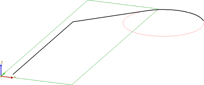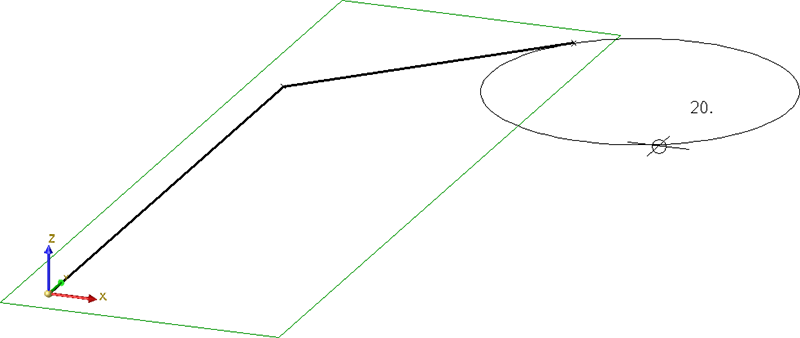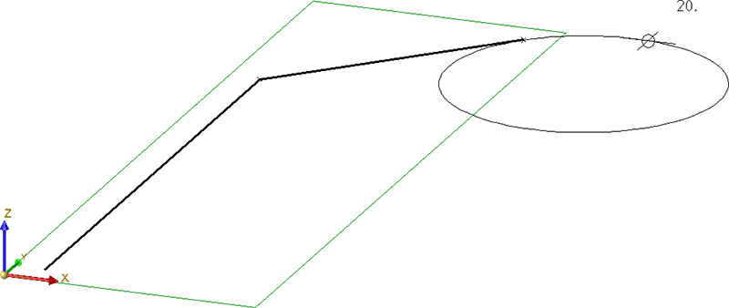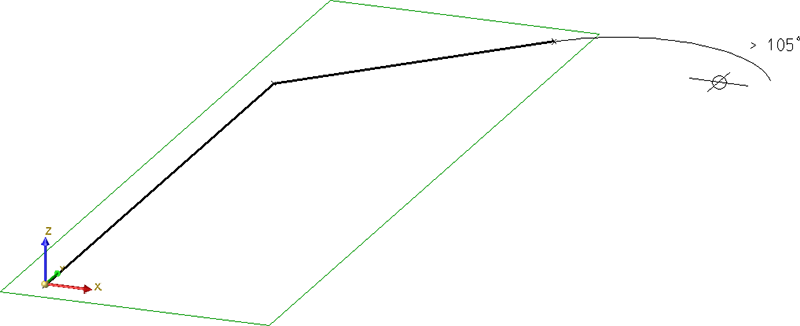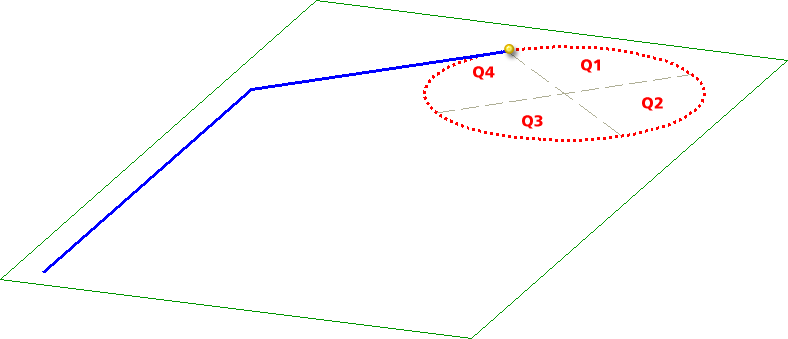 In die abgebildete Skizze soll am markierten Punkt ein Bogen eingefügt werden, Der markierte Punkt bestimmt dabei auch die Lage der Quadranten, die bei der Erzeugung des Bogens eine Rolle spielen.