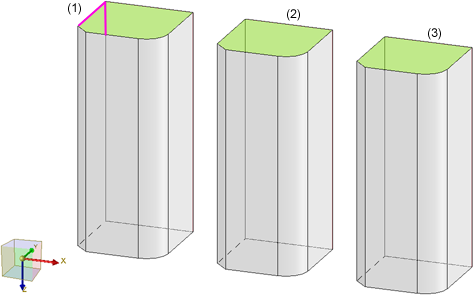 Teil spiegeln, über Kante/Punkt Die Spiegelungsebene wird durch Identifizierung einer Kante und Bestimmung eines Punktes festgelegt. |