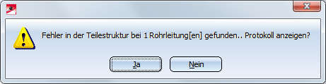 Mit einem Klick auf Zeigen wird die in der Liste gewählte Rohrleitung in der Konstruktion farbig markiert. Die Markierung bleibt bestehen, solange das Fehlerprotokoll geöffnet ist. Währenddessen ist die Szene navigierbar.