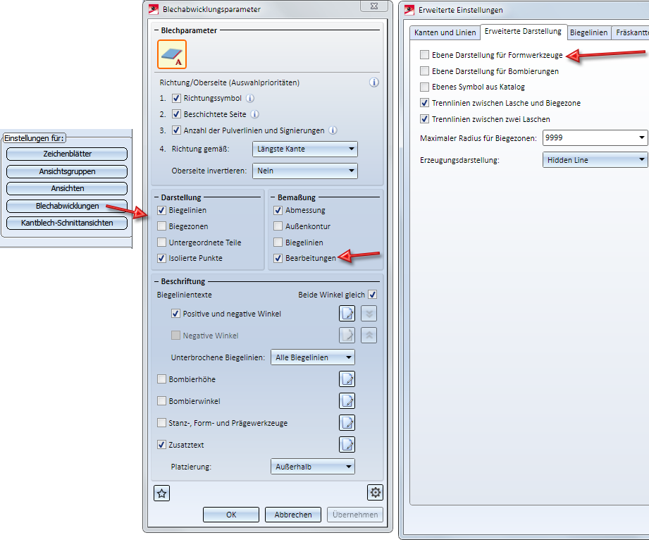Zeichnungsableitung - Erweiterte Bemaßungsregeln für Kantbleche