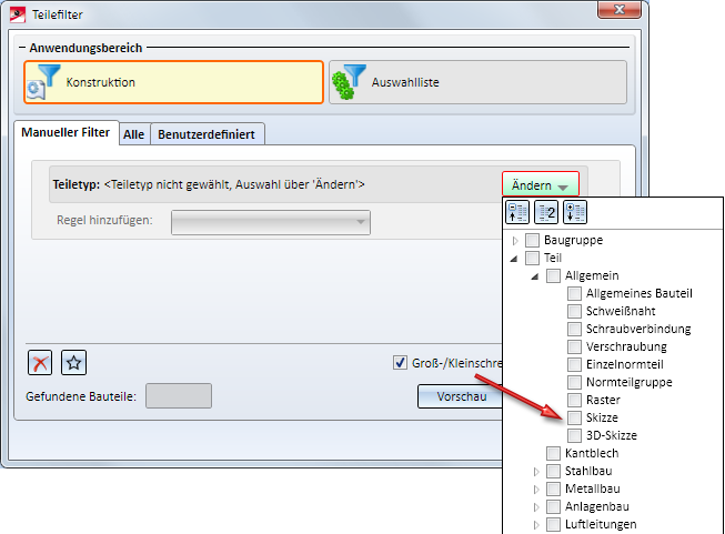 im ICN unterschiedlich kennzeichnen und auch die Teilefilter bei der Suche lassen sich getrennt für ebene Skizzen und 3D-Skizzen einsetzen.