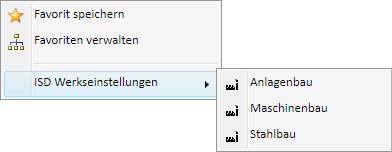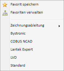 Um die Favoritenverwaltung zu starten, klicken Sie im jeweiligen Dialogfenster auf das Symbol Favoriten, um das Kontextmenü mit den verfügbaren Funktionen zu aktivieren.