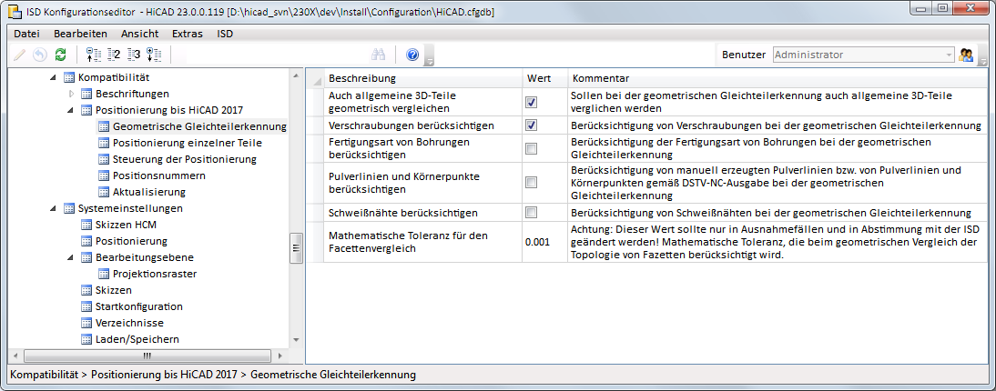 Die Einstellungen unter Kompatibilität > Positionierung bis HiCAD 2017 > Aktualisierung gelten auch für die Standard-Positionierung!