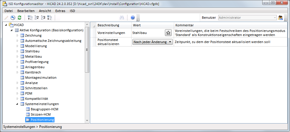 Einstellungen für die Positionierung bis HiCAD 2017