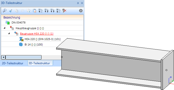 Für die Teile einer mit Verwaltung + BIM erstellten Fertigungszeichnung lassen sich automatisch auch Dokumente mit den Fertigungsdaten (CAM) erzeugen, in HELiOS verwalten und entsprechend verknüpfen. Wie das funktioniert soll im Folgenden anhand des abgebildeten Beispiels erklärt werden.