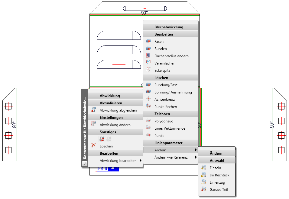 Funktionsübersicht (3D-Blech) • Allgemeines zur Blechbearbeitung (3D-Blech) • Abwicklungsparameter (3D-Blech) • Abwicklung aktualisieren (3D-Blech)