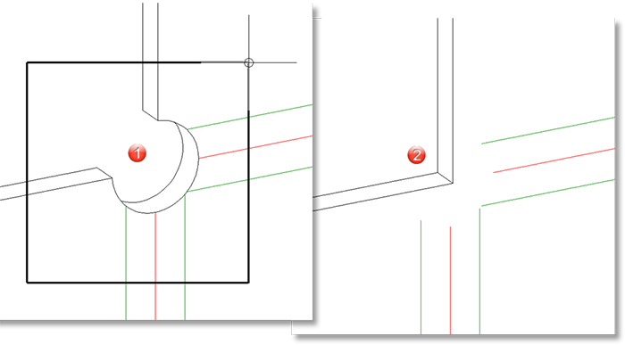 Die Ecken werden vereinfacht. Sie können nun weitere Ecken der Abwicklungen bearbeiten oder die Funktion mit der mittleren Maustaste beenden. |