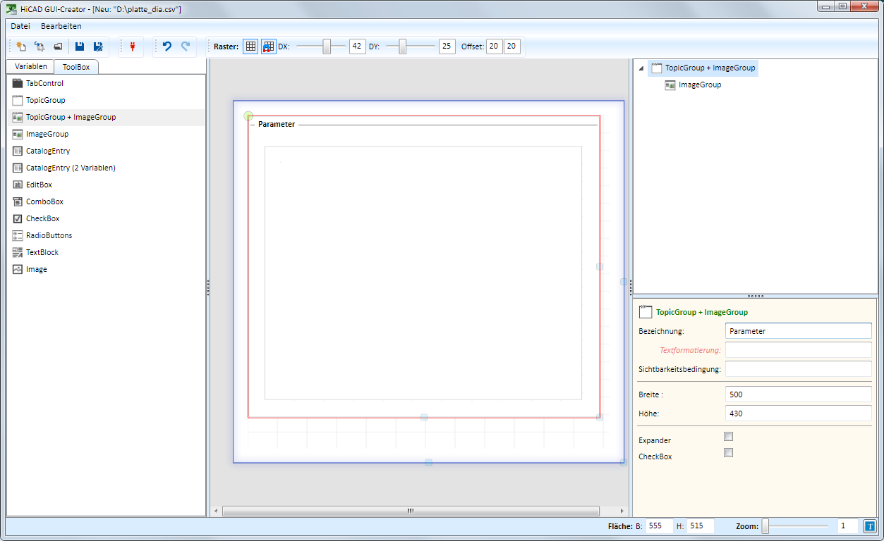 Dazu wird der HiCAD GUI Creator durch Aufruf der Datei