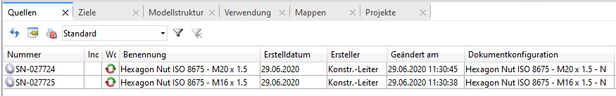 In den Verknüpfungslisten von HELiOS können Sie die Ausprägungen von Normteilen am Attribut Dokumentkonfiguration erkennen.