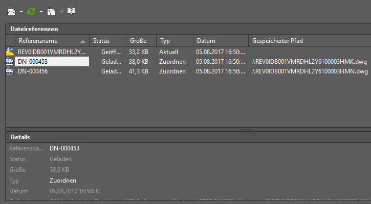Namen der externen Referenzen aktualisieren öffnet Sich der Dialog zur Attributauswahl :