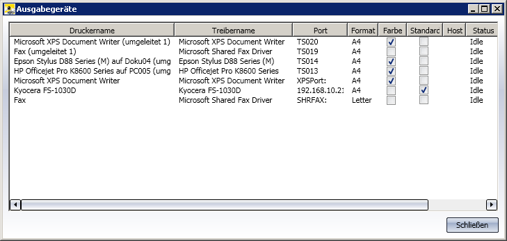 Im Menüpunkt Ausgabegeräte anzeigen... sind alle im System zur Verfügung stehenden Geräte aufgelistet.