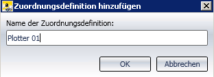 neben Zuordnungsdefinition im folgenden Dialog einen Namen für die Zuordnung ein, z.B. "Plotter 01"