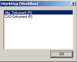 Im folgenden Dialog für den Workflow-Objekttyp sollte Allg. Dokument (R) ausgewählt werden.