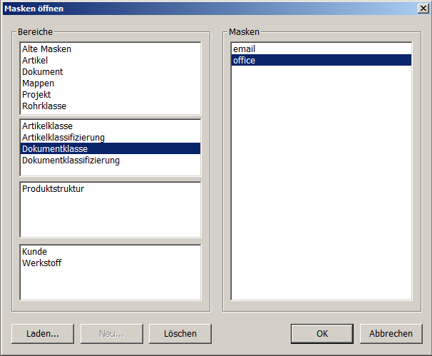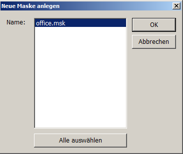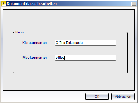 Beispiel: Sie haben eine Dokumentklasse für Office-Dateien angelegt. Die Klasse heißt "Office Dokumente" und als Maskenname haben Sie "office" eingegeben.