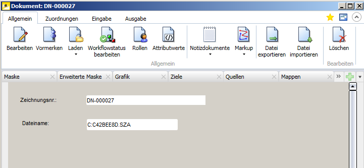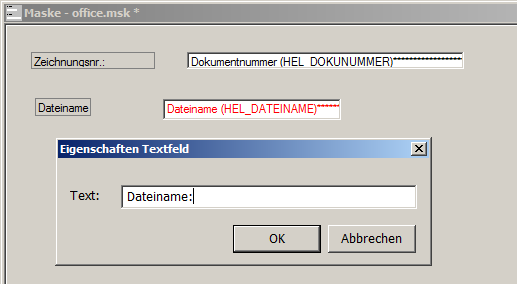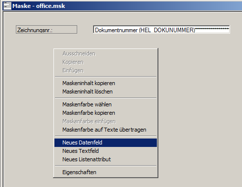Bei einer Klasse für Office-Dokumente wäre z.B: denkbar, dass Sie sich den Dateinamen anzeigen lassen wollen. Machen Sie einen Rechtsklick auf die Maske...