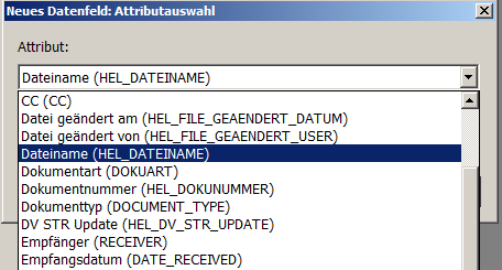 Im folgenden Dialog zur Attributauswahl lässt sich das Attribut Dateiname (HEL_DATEINAME) hinzufügen.