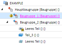 Die Bauteilstruktur des gewählten Teils / der gewählten Baugruppe wird aufgelöst.
