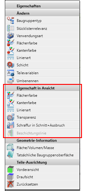 Ansichtseigenschaften von Baugruppen im Kontextmenü