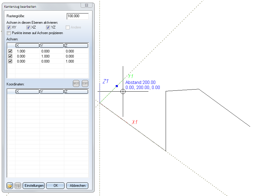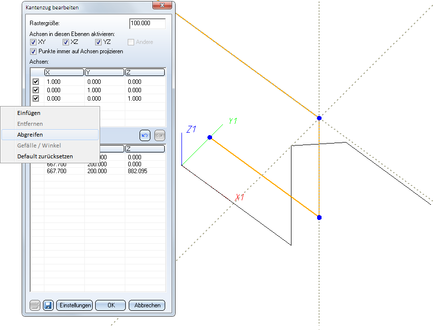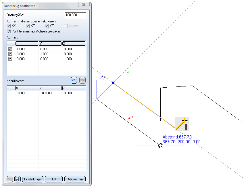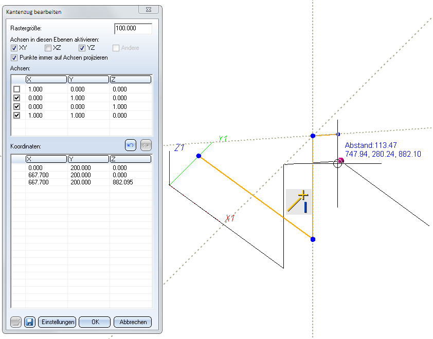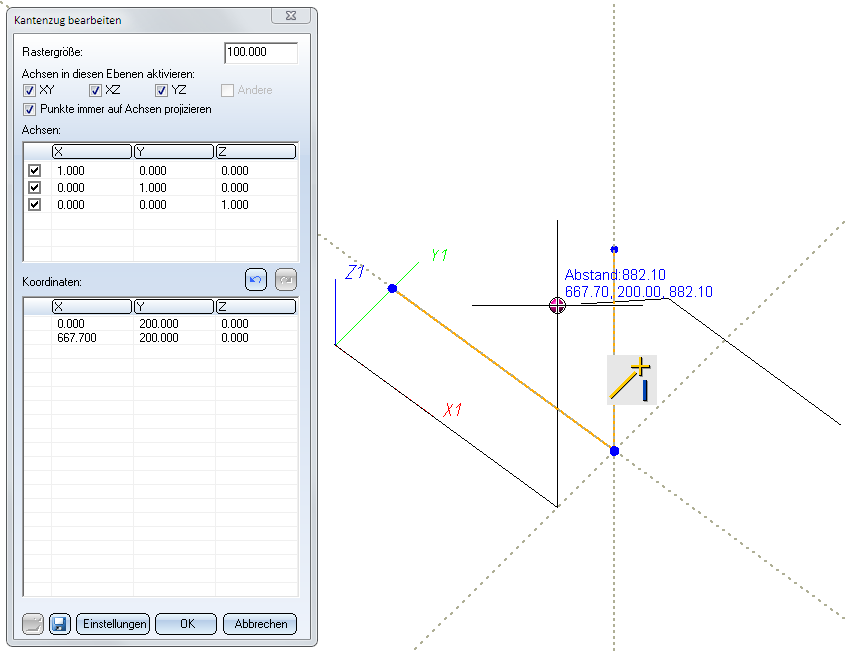 Daher aktivieren wir die Checkbox Punkte immer auf Achsen projizieren. Das erlaubt uns, den gewünschten Punkt zu wählen.