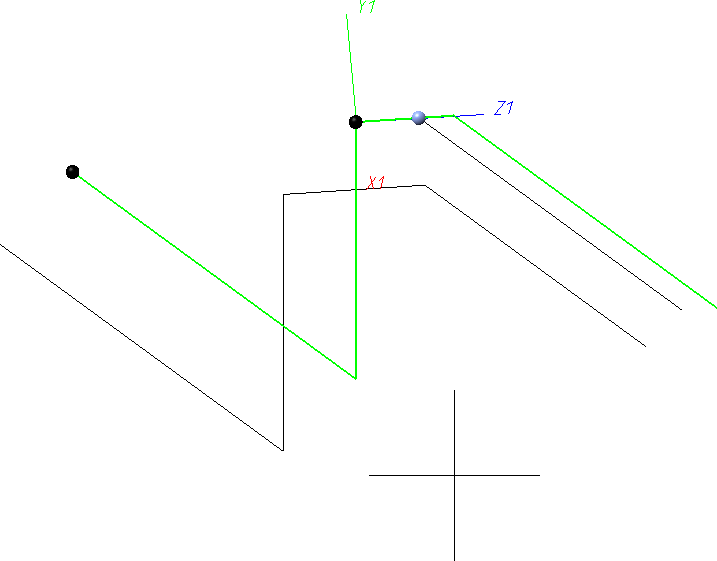 Nun stellen wir fest, dass wir keine passende Achse haben, um parallel in diagonaler Richtung fortzufahren. Daher definieren wir nun eine zusätzliche Achse, die wir aus der Konstruktion abgreifen.