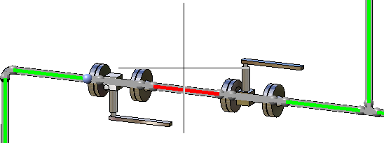 Beispielsweise sollen im folgenden Rohrleitungsabschnitt die beiden Ventile gemeinsam nach rechts gerückt werden, wobei diese ihren Abstand jedoch beibehalten sollen.