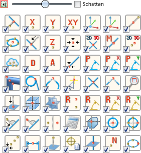 Um Punktoptionen aus- bzw. einzublenden, deaktivieren bzw. aktivieren Sie die Checkbox der jeweiligen Icons.