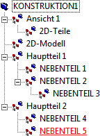 2D-Konstruktionen sind immer Einzelteilkonstruktionen, da es hier keine Baugruppen und Hauptbaugruppen mit expliziter Baugruppenkennung gibt.