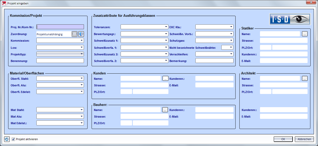 Bei der Parameterkonfiguration werden die HELiOS Dialogmasken durch Dialogmasken ersetzt, die speziell auf die Dokument- und Zeichnungsverwaltung im Bauwesen abgestimmt sind (aus dem Ordner templates\Module_3DSteel\BIM\sys).