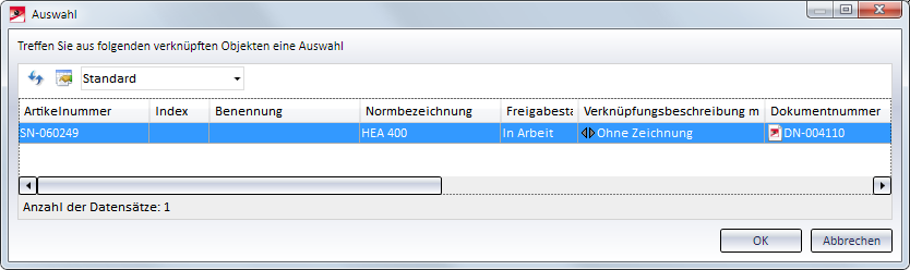 . - Im Auswahlfenster wählen wir die Werkstattzeichnung der Profile und klicken auf OK.