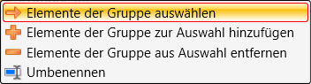 Durch einen Klick auf dieses Symbol wird die Gruppe gelöscht. Um ein Element aus der aktuellen Gruppe zu entfernen, klicken Sie zunächst in der Gruppenzeile auf das |