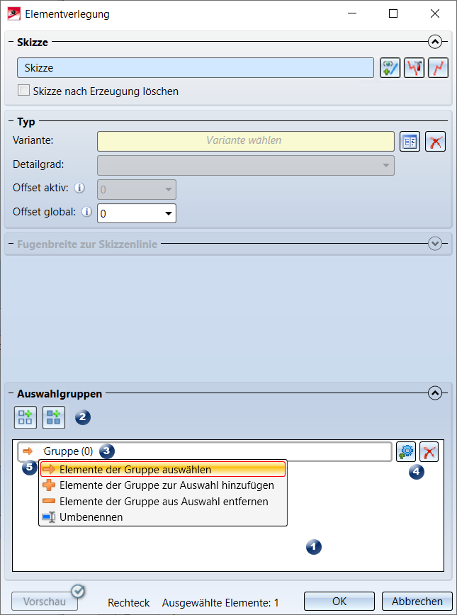 Im Dialogfenster der Elementverlegung steht dazu der Bereich Auswahlgruppen zur Verfügung.
