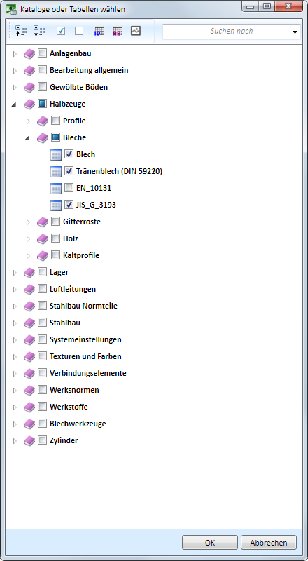 Wenn Sie in der Baumstruktur auf das Symbol klicken, kann die Katalogauswahl , z.B.
