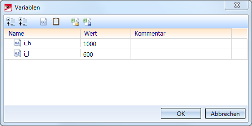- Schließen Sie das Fenster Teilevariablen mit einem Klick auf OK.