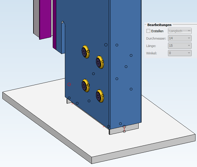 Für Bohrungen lässt sich darunter der Durchmesser angeben, die anderen beiden Optionen bleiben ausgegraut. Werden Langlöcher verwendet, lassen sich für diese auch noch die Länge und ein Winkel bestimmen.