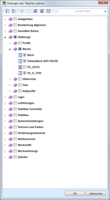 Die Kataloge oder Tabellen, die später im Benutzerdialog zur Auswahl angeboten werden sollen, lassen sich durch einen Klick auf das Symbol