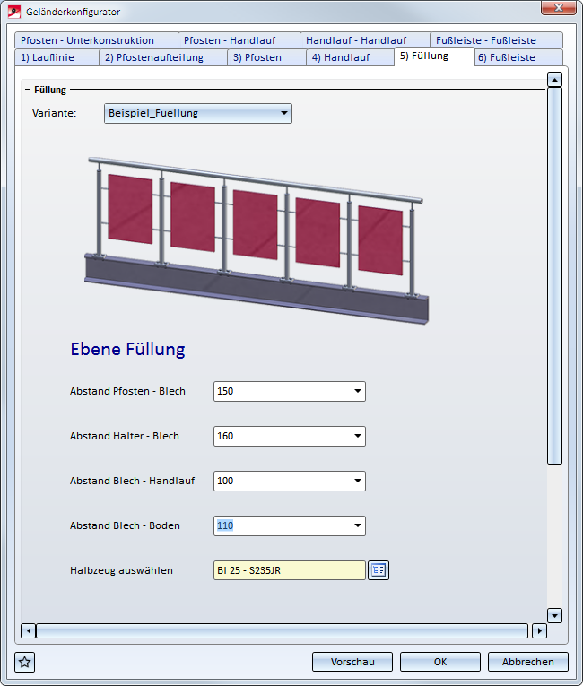 Damit steht die Variante nun im Geländerkonfigurator als Füllung samt eigenem Dialog zur Verfügung.