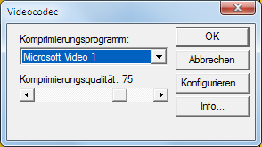 Nehmen Sie die gewünschten Einstellungen (Codec-abhängig) vor und beenden Sie das Fenster mit OK.