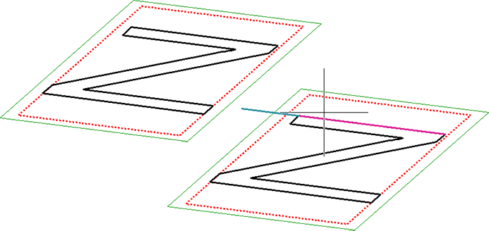 Wählen Sie die Linie aus, die verlängert oder verkürzt werden soll. Anschließend lässt sich die Linie durch Bewegen des Cursors dynamisch verkürzen oder verlängern. Dabei wird die verlängerte/verkürzte Linie farbig gekennzeichnet. Die Verlängerung/Verkürzung wird ausgeführt, sobald Sie einen Punkt bestimmen oder eine Kante auswählen.