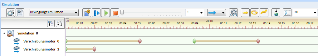 Wir verwenden das Beispiel aus der Bewegungssimulation mit den zwei Zeitintervallen, löschen aber die Motoren 1 und 3.
