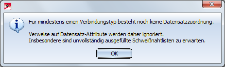 Klicken Sie auf OK, um die Generierung der Isometrie / des Rohrplans zu starten. HiCAD prüft zunächst, ob allen Verbindungstypen ein HELiOS-Datensatz zugeordnet ist. Ist dies nicht der Fall, dann werden die Verweise auf Datensatz-Attribute ignoriert. Dadurch kann es insbesondere bei Schweißnahtliste dazu führen, dass diese unvollständig ausgefüllt sind.