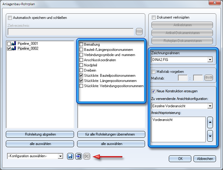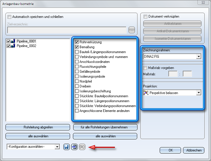 Isometrie/Rohrplan - Arbeiten mit Konfigurationen