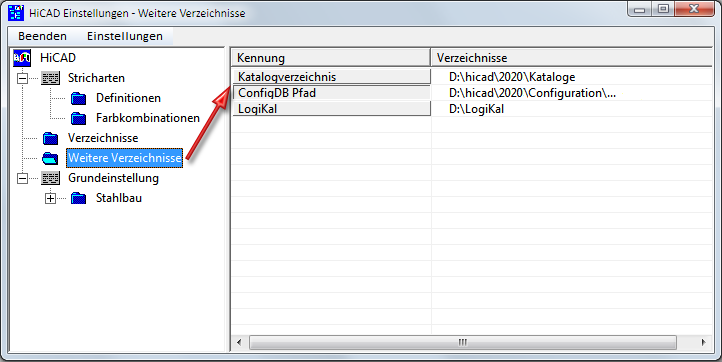 eingetragenen Pfade für die HiCAD Kataloge und die Konfigurationsdatenbank einstellen. nnnn.n ist dabei die HiCAD Versionsnummer, also beispielsweis 2020.0.