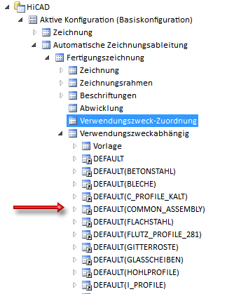 - Setzen Sie den Cursor im Konfigurationsmanagement unter Automatische Zeichnungsableitung > Fertigungszeichnung > Verwendungszweck-Zuordnung in die Gruppe Sonstiges.