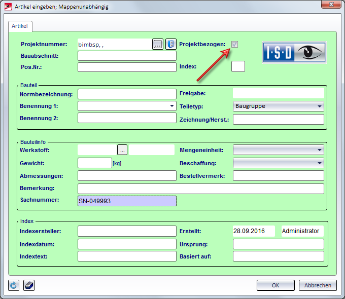 ISD-seitig ist die Checkbox im Modell immer aktiv und in den abgeleiteten Zeichnungen inaktiv Die Deaktivierung kann aber beispielsweise dann sinnvoll sein, wenn Sie komplexe Konstruktionen in Baugruppen/Bauabschnitte strukturieren und die Bearbeitung der Baugruppen/Bauabschnitte auf mehrere Arbeitsplätze verteilen wollen (Concurrent Engineering). Hier wird beim Einsatz von Verwaltung + BIM so verfahren, dass die Bearbeitung, Positionierung und Zeichnungsableitung nicht in der Ausgangskonstruktion, sondern in den Einzelteilzeichnungen der Baugruppen erfolgt. Änderungen an den Baugruppen werden aufgrund der Referenzierung natürlich auch in die Ausgangskonstruktion übertragen. Um hier zu verhindern, dass in der Ausgangskonstruktion positioniert wird, kann im Dokumentstamm der Ausgangskonstruktion die Checkbox Positionierung deaktiviert werden.