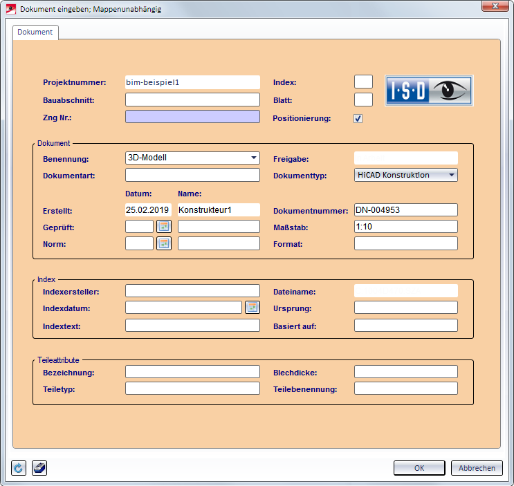 Geben Sie die Dokumentattribute ein und verlassen Sie das Fenster mit OK.