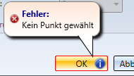 Kann die Funktion mit den eingegebenen Daten nicht ausgeführt werden, dann erscheint am OK-Button dieses Symbol Info. Bewegen Sie den Cursor über das Symbol um die Fehlermeldung einzublenden.