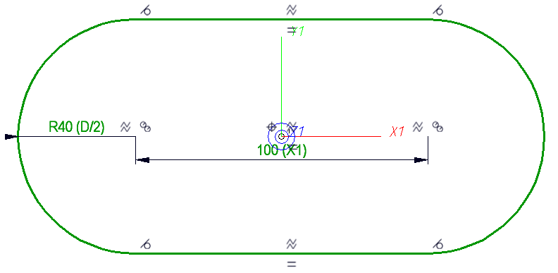 - Die Skizze wird nun mit Lage- und Maßbedingungen versehen: