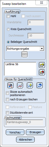 Das Teil für die Bearbeitung entsteht in diesem Falle als Kantenzugsweep aus einer (parametrisierten) Skizze.
