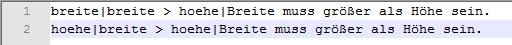 markiert und es wird in beiden Fällen die Fehlermeldung Breite muss größer als Höhe sein. angezeigt.