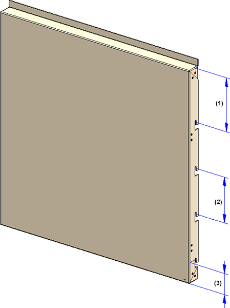 (1) Randabstand der obersten Agraffe, (2) Abstand zweier Agraffen, (3) Randabstand der untersten Agraffe